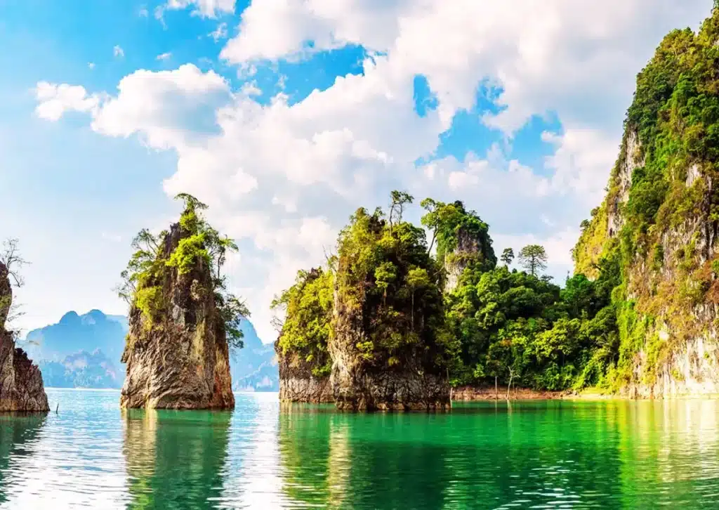 Les formations calcaires karstiques du parc créent un paysage unique de pics rocheux s’élevant jusqu’à 960 mètres au-dessus du niveau de la mer. Ces falaises de calcaire, sculptées par des millions d’années d’érosion, surgissent directement du lac Cheow Lan, créant un décor de carte postale.