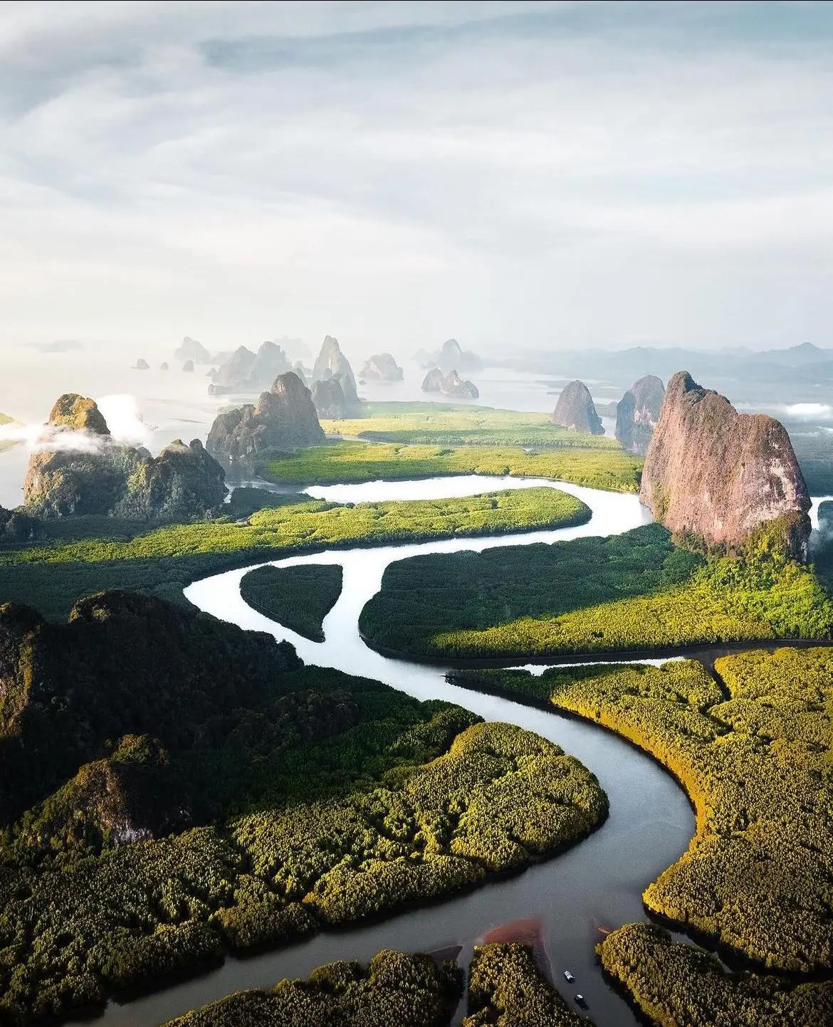 Les formations karstiques, sculptées par des millions d’années d’érosion, abritent lagunes secrètes, plages isolées et grottes mystérieuses. La plus emblématique reste James Bond Island (Koh Tapu), rendue célèbre dans le film L’homme au pistolet d’or. Sa silhouette en forme d’aiguille est devenue un symbole mondial des paysages côtiers thaïlandais.